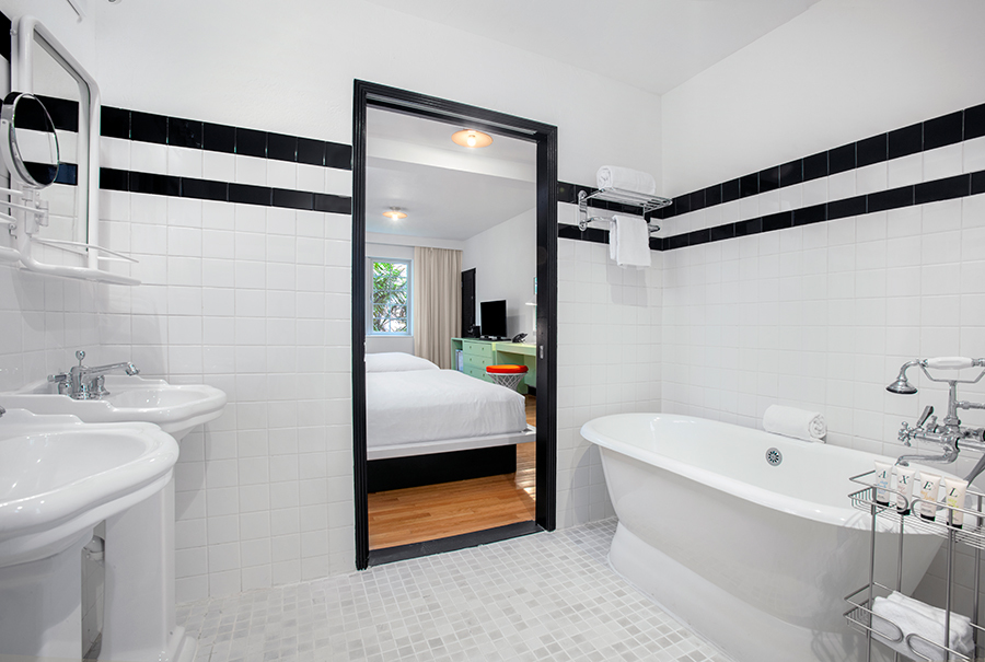 There is a pyjama party in a suite. And someone isn't wearing pyjamas.