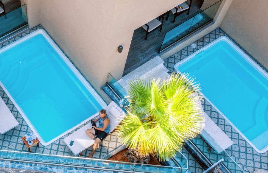 Habitaciones ubicadas dentro del patio interior del hotel.