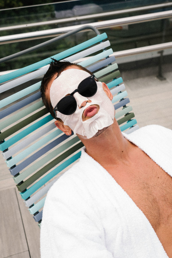 En el spa de Mykonos, una pareja está compartiendo un secreto (y una copa de champán).