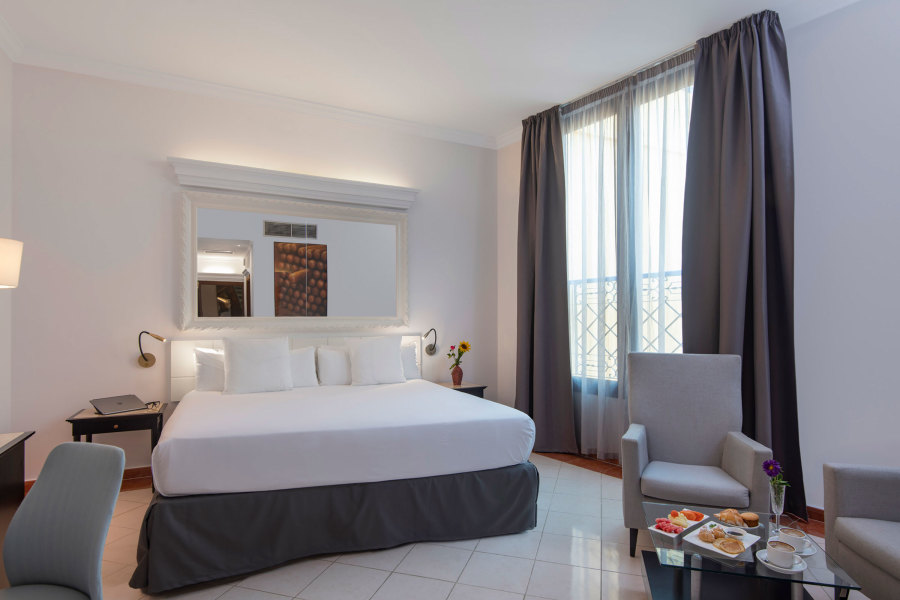 Las habitaciones Axel City pueden ser de interior con vistas al patio o exteriores con vistas al Parque Central o a la Calle Neptuno, contando algunas de ellas con balcón*.